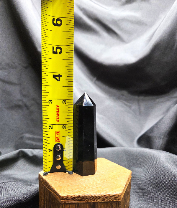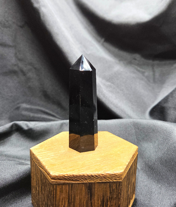 This piece is a polished crystal point with a single pointed termination, measuring approximately 3 inches tall. Crystal points are commonly used to focus, direct, and concentrate energy through the pointed tip. The upright form makes this black obsidian point well suited for meditation spaces, protective layouts, crystal grids, altar arrangements, or as a striking decorative display. The pointed shape highlights the stone’s reflective surface while maintaining a strong, grounded presence.