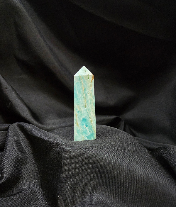 This beautiful blue aragonite point displays soothing ocean-like shades of aqua, turquoise, and soft seafoam, accented with natural creamy white veining and organic mineral patterns. The gentle color transitions and subtle translucency create a peaceful, flowing appearance that feels both serene and uplifting. Smooth polished faces contrast beautifully with natural internal textures, making each crystal uniquely stunning and full of character.