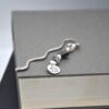 This bookmark features a metal Cancer charm highlighted with Pearl, Rainbow Moonstone, and Abalone beads, which are all aligned with Cancer. Approximately 3″