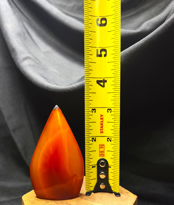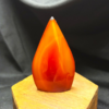 This carnelian waterdrop carving features rich, glowing shades of fiery orange, deep amber, and warm red, with subtle internal banding and soft color transitions visible beneath the polished surface. The smooth, high-gloss finish enhances the stone’s natural translucency, allowing light to move through the layers and intensify its warm, ember-like glow. The elegant teardrop silhouette gives this piece a fluid, organic presence that feels both bold and soothing.