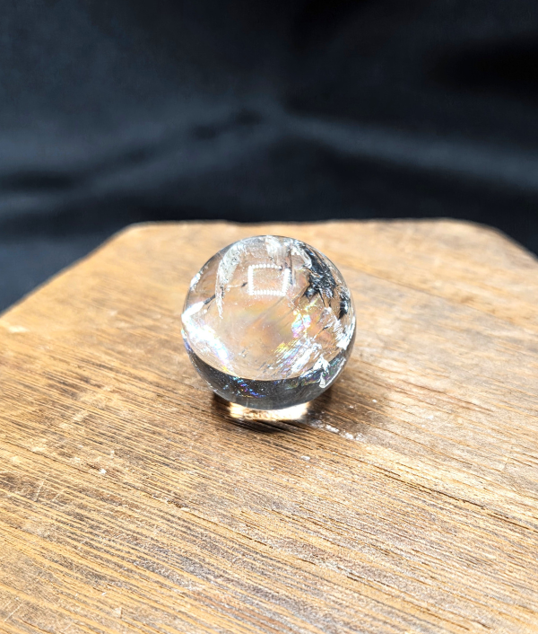 This clear quartz mini sphere features exceptional clarity with natural internal fractures and light-catching inclusions that create subtle rainbow flashes when illuminated. The polished spherical shape enhances the stone’s transparency, allowing light to move freely through the crystal and highlight its natural internal patterns. Smooth, glossy, and visually luminous, this piece has a clean, high-vibrational aesthetic that feels both elegant and powerful despite its small size.