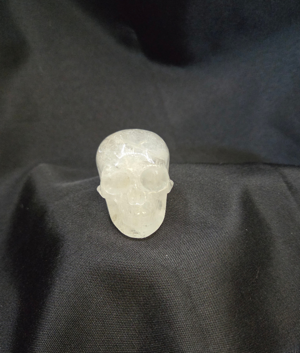 This Clear Quartz crystal skull features fully transparent to lightly translucent quartz with natural internal formations and subtle veining that create depth and visual interest throughout the carving. The polished surface enhances the stone’s glassy luster, highlighting its clarity, natural brilliance, and unique internal character. Clear Quartz is celebrated for its versatility, clarity, and energetic properties, making it a favorite among crystal collectors, spiritual practitioners, and decorative display enthusiasts. Each piece is naturally unique, with variations in clarity, inclusions, and internal structure that ensure no two skulls are exactly alike.