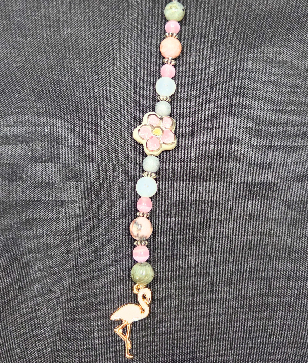 Ignite your style with our Radiant Flamingo Pink Charm. This vibrant piece features pink zebra jasper, white agate, pink cat’s eye, silver drusy agate, and a beautiful glass pink flower accent for a radiant, playful glow.