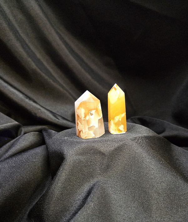 This piece is a polished crystal point with a single pointed termination, measuring approximately 2 inches tall. Crystal points are commonly used to focus, direct, and amplify energy through the pointed tip. The upright form makes this flower agate point well suited for meditation spaces, crystal grids, altar arrangements, energy work, or decorative display. The polished faces highlight the stone’s natural floral inclusions while maintaining a balanced, elegant shape.