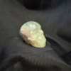 This is a polished crystal skull carving, measuring approximately 3 inches long, 2.25 inches tall, and 1.75 inches wide. Crystal skulls are popular among collectors, spiritual practitioners, and those drawn to symbolic carvings, as they are often associated with wisdom, insight, and ancient knowledge. This smaller skull has a comfortable hand-held size and displays beautifully on an altar, shelf, desk, or in a curated crystal collection. Its detailed carving and vibrant natural coloration make it an eye-catching display piece as well as a meaningful addition to meditation, spiritual work, or energy-focused spaces.