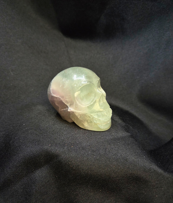Green and Purple Fluorite is often associated with mental clarity, intuition, focus, spiritual growth, and energetic cleansing. It is commonly used to help clear mental fog, organize scattered thoughts, and support balance between the heart and third eye chakras. Many crystal enthusiasts choose Fluorite for meditation, studying, decision-making, and spiritual practices focused on insight and alignment. In a crystal skull form, Fluorite is often believed to enhance intuitive awareness, strengthen mental focus, and support deeper connection to wisdom while helping to clear and stabilize surrounding energy.