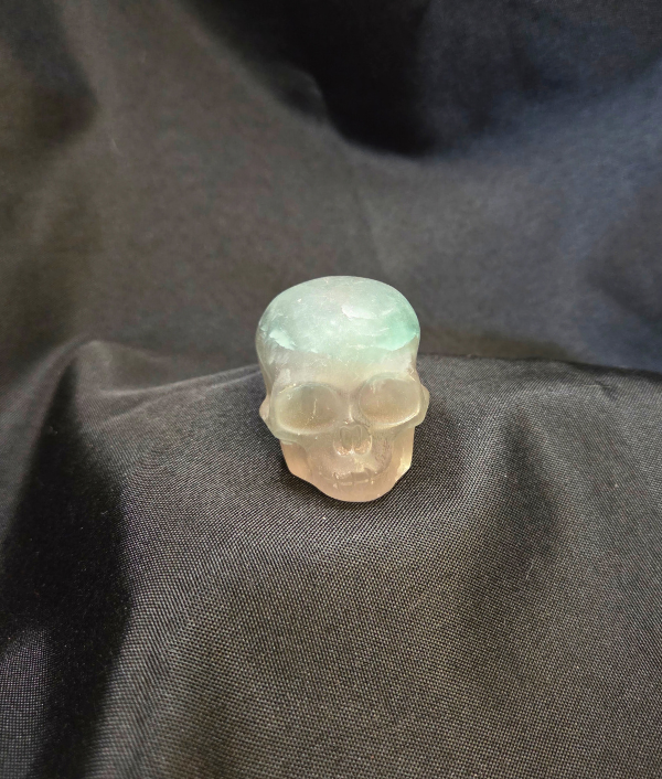 Green and Purple Fluorite is often associated with mental clarity, intuition, focus, spiritual growth, and energetic cleansing. It is commonly used to help clear mental fog, organize scattered thoughts, and support balance between the heart and third eye chakras. Many crystal enthusiasts choose Fluorite for meditation, studying, decision-making, and spiritual practices focused on insight and alignment. In a crystal skull form, Fluorite is often believed to enhance intuitive awareness, strengthen mental focus, and support deeper connection to wisdom while helping to clear and stabilize surrounding energy.