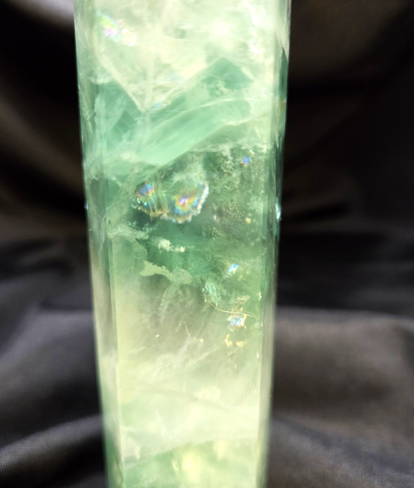 This beautiful fluorite tower showcases soft green hues with natural internal veils, gentle color zoning, and light-catching inclusions that give it depth and character. Fluorite is widely known as a stone of clarity, focus, and energetic balance, often used to help calm the mind, organize thoughts, and support clear decision-making.
