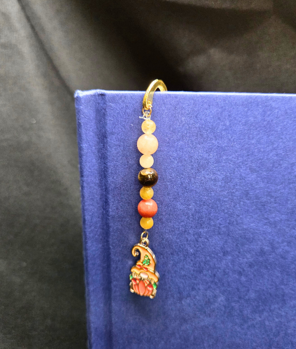 Crafted to be both decorative and functional, this gemstone bookmark is perfect for marking your place in your favorite book, journal, planner, or seasonal reading list. The golden and earthy tones of the gemstone beads pair beautifully with the gnome charm, making this bookmark a fun and thoughtful gift for readers, garden lovers, fantasy enthusiasts, and anyone who enjoys whimsical handmade accessories.