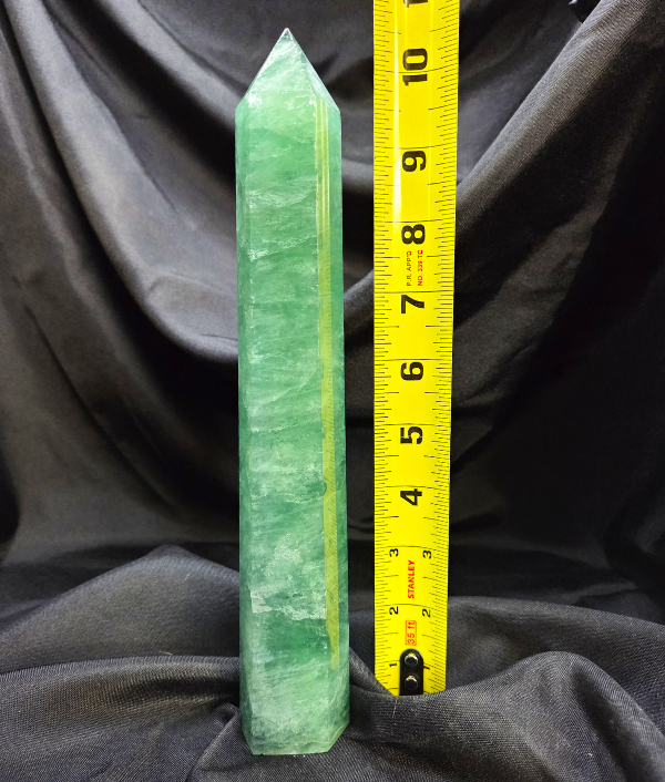 This is a polished crystal tower with a pointed termination, measuring approximately 10.5 inches tall. Crystal towers are often used to focus and direct energy upward through the point, making them ideal for meditation spaces, energy grids, altar work, and statement crystal displays. The larger size enhances both its visual impact and energetic presence.
