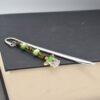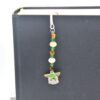 This bookmark features an enamel Grogu charm highlighted with Serpentine, Tiger’s Eye, and Green Crystal beads. Approximately 4.5″