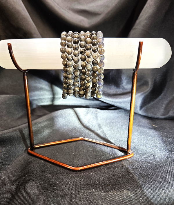 Ground and protect your energy with our 6mm Larvikite gemstone bead bracelet, a striking stone known for its deep gray tones and subtle flashes of silver-blue shimmer. Each bead is hand-selected for its smooth polish and natural labradorescent glow, creating a sophisticated and powerful everyday accessory.