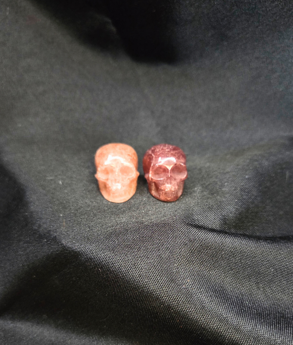 This is a polished crystal skull carving, measuring approximately 1.25 inches long and 1 inches tall. Crystal skulls are popular among collectors, spiritual practitioners, and those drawn to symbolic carvings, as they are often associated with wisdom, insight, and ancient knowledge. This smaller skull has a compact, hand-held size that makes it ideal for display on an altar, desk, or shelf, or for carrying in a pouch for meditation or personal spiritual work. Its detailed carving and soft pink coloration make it a charming decorative piece as well as a meaningful addition to a curated crystal collection.