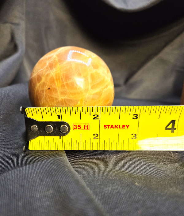 This peach moonstone sphere displays soft blush, peach, and warm cream tones with gentle translucency and subtle internal shimmer. The polished surface enhances the stone’s natural glow, allowing light to move through the sphere and highlight delicate internal textures. Smooth and soothing in appearance, this piece carries a calming, nurturing aesthetic with a quiet, luminous presence.