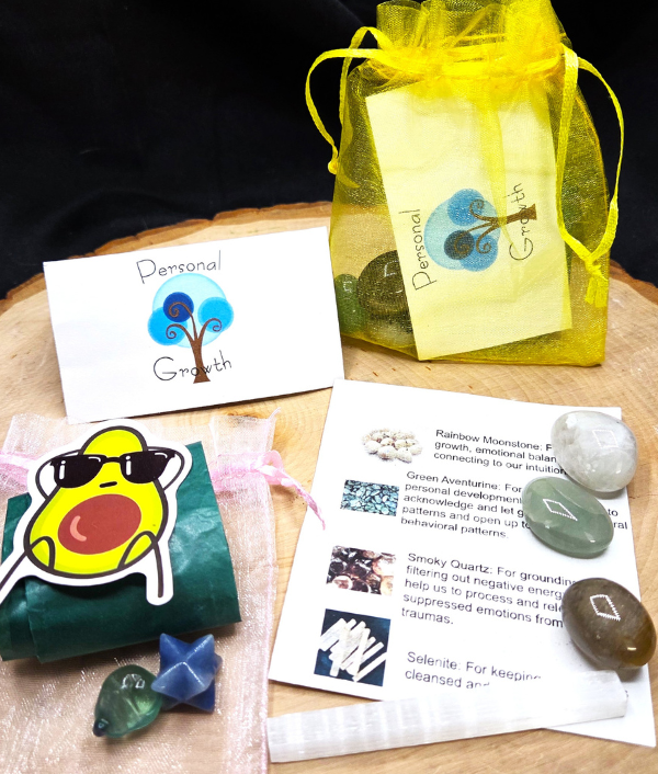 Support self-development, transformation, and inner evolution with our Personal Growth Intention Bag, intentionally curated to nurture self-awareness, personal empowerment, and emotional resilience. This intention set is designed to help you release limiting patterns, embrace growth, and step confidently into your best self.