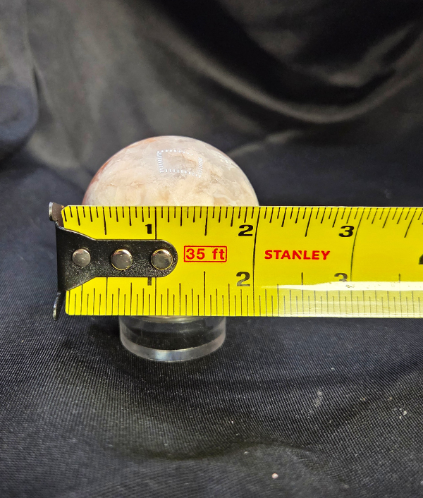 This piece is a polished crystal sphere measuring approximately 2 inches in diameter. Crystal spheres symbolize unity, wholeness, and the balanced flow of energy in all directions. This size is ideal for meditation spaces, bedside tables, shelves, or as a serene focal point within a curated crystal display.