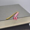 This bookmark features an enamel pink butterfly charm highlighted with Rose Quartz, Pink Crackle Glass, and Clear Crystal beads. Approximately 3″