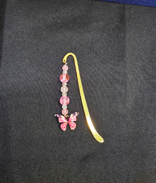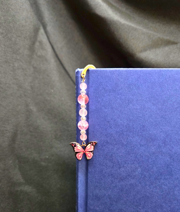 Add a touch of softness and transformation to your reading routine with this handmade Pink Butterfly gemstone bookmark, a delicate and uplifting accessory for book lovers, butterfly lovers, and crystal collectors. This charming crystal bookmark features an enamel pink butterfly charm highlighted with Rose Quartz, Pink Crackle Glass, and Clear Crystal beads, creating a sweet and feminine design full of light, love, and graceful beauty.