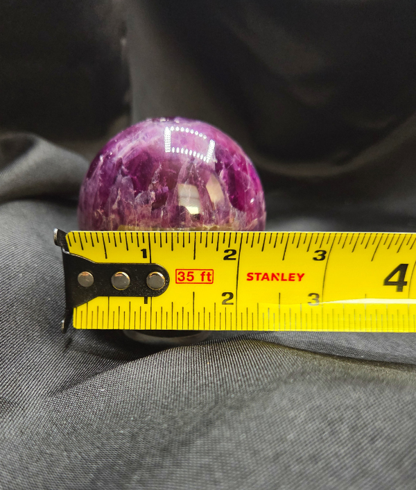 This piece is a polished crystal sphere measuring approximately 2.5 inches in diameter. Crystal spheres are associated with balance, unity, and the even distribution of energy in all directions. Its size makes it ideal for meditation spaces, desks, shelves, or as a visually captivating addition to a crystal collection.