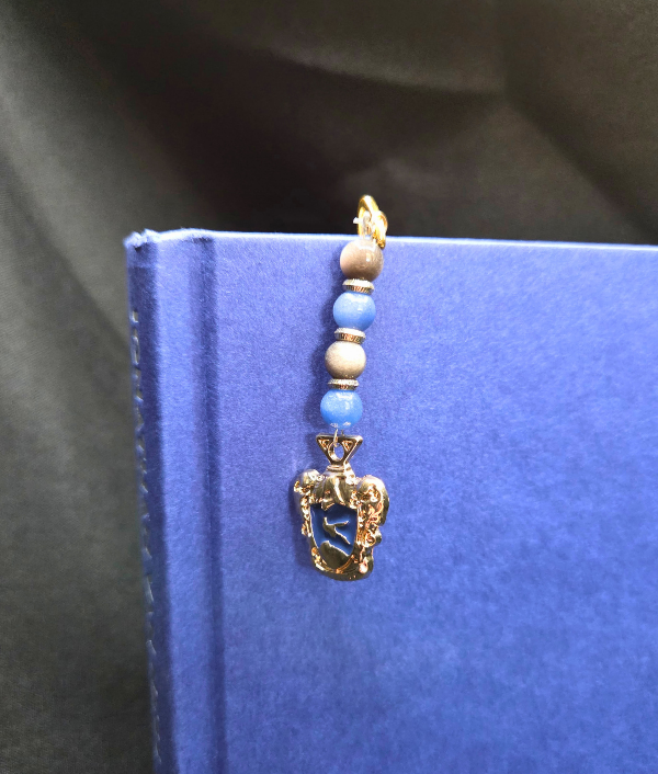Celebrate wisdom, curiosity, and magical academic energy with this handmade Eagle House gemstone bookmark, a thoughtful accessory for book lovers, fantasy fans, and crystal collectors. This enchanting crystal bookmark features an enamel eagle house-inspired charm highlighted with Blue Aventurine, Silver Sheen Obsidian, and gold spacer beads, creating a rich and mystical design inspired by intellect, insight, and imagination.