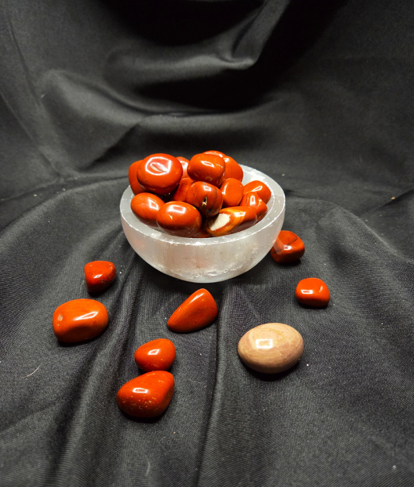 Red Jasper is a variety of chalcedony known for its rich red to brick-red coloration, often with subtle natural patterning or earthy inclusions. Its opaque appearance and smooth, polished finish make it a classic and widely loved tumble stone. Each piece carries its own natural variations in tone and texture.