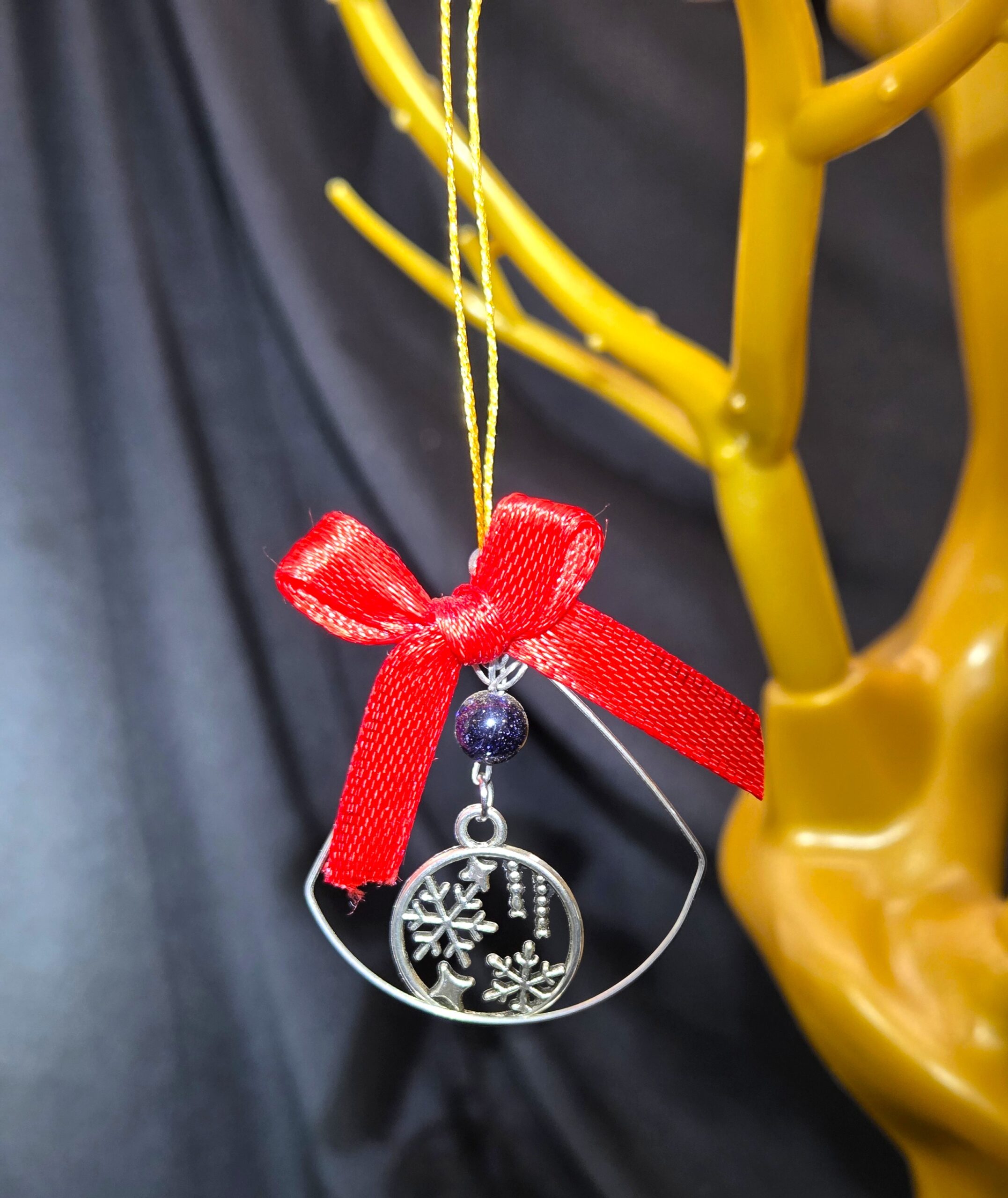 Perfect for decorating your Christmas tree, accenting garlands, or gifting to someone special, this Metal Snowflake Ornament with Blue Goldstone Bead radiates charm, serenity, and a touch of winter magic. It’s a timeless keepsake that brings sparkle and elegance to your holiday celebrations.