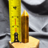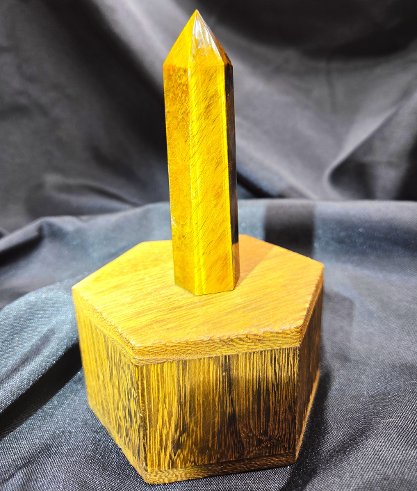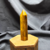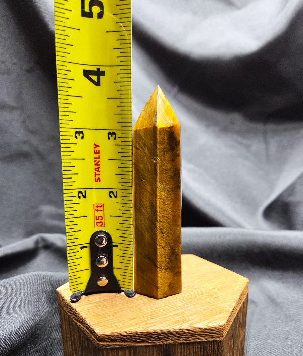 This Tiger’s Eye point displays rich golden browns, warm honey tones, and deep bronze bands that shimmer as the light moves across its surface. The stone’s signature chatoyancy—often described as a silky, cat’s-eye effect—creates flowing streaks of light that give the piece depth and movement. Each face reveals layered bands formed naturally within the stone, giving this point a bold yet grounding presence.