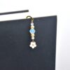 This bookmark features a white enamel flower and is highlighted with Opalite, Rose Quartz, and Gold Glass Pearl beads. Approximately 3″