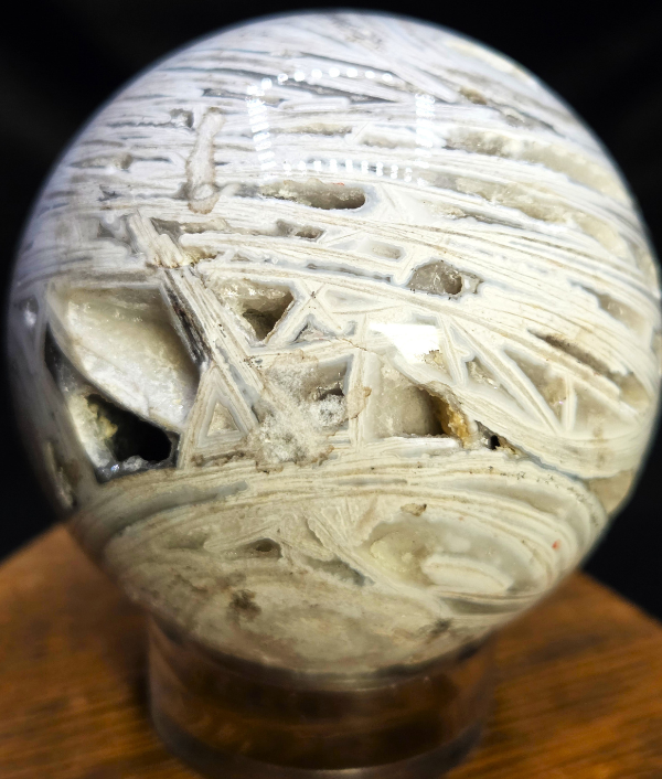 White lace agate is a variety of banded chalcedony most commonly sourced from Mexico, where unique geological conditions create its signature flowing and lace-like patterns. Each sphere is naturally one of a kind, with variations in banding, translucence, and internal formations that add to its individual character.