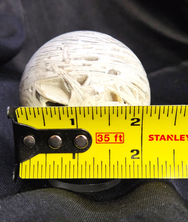 This piece is a polished crystal sphere measuring approximately 2 inches in diameter. Crystal spheres are associated with balance, unity, and the even distribution of energy in all directions. Its size makes it ideal for display on desks, shelves, altars, or within meditation spaces.