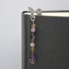 This bookmark features an Amethyst stone wire wrapped charm highlighted with Amethyst, Yellow Fluorite, and Lepidolite beads. Approximately 4.5″