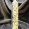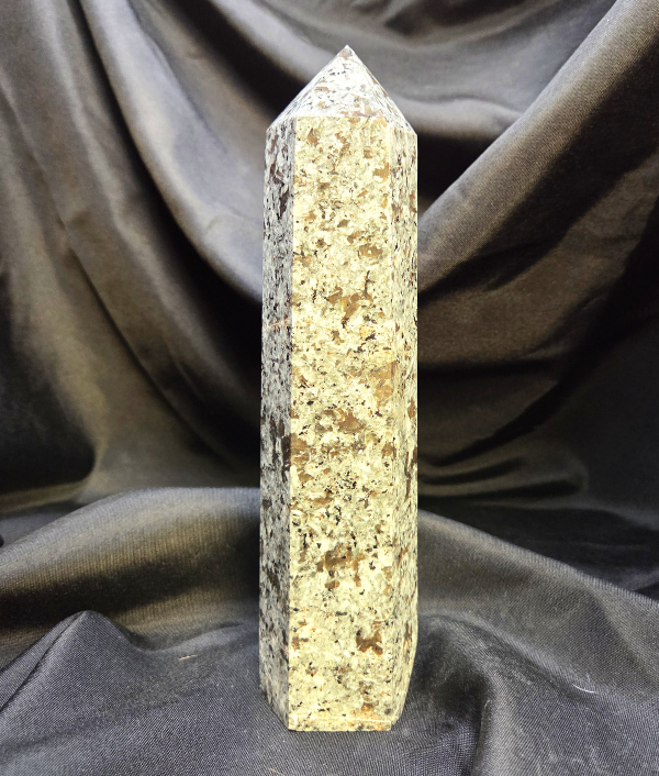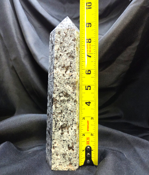 This piece is a polished crystal tower with a single pointed termination, measuring approximately 9 inches tall. Crystal towers are often used to focus, direct, and amplify energy through the pointed tip. Its compact yet substantial size makes this yooperlite tower ideal for desks, shelves, altar spaces, or as a standout display piece—especially when paired with UV lighting. It stands securely on its own and is easy to showcase in both natural and UV light.