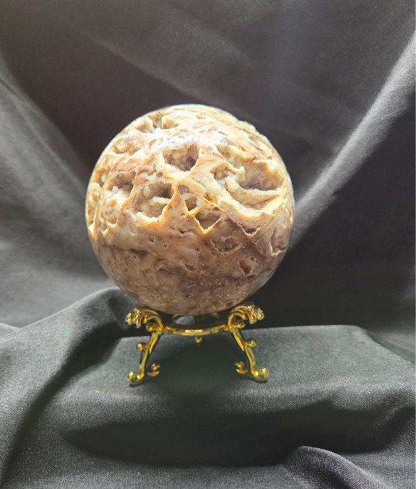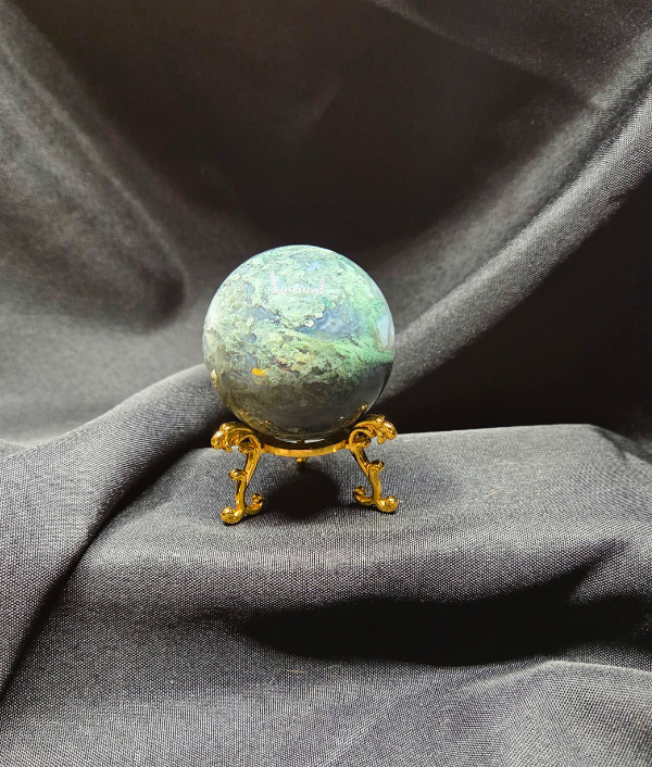 Showcase your favorite small crystal spheres with this elegant gold-tone metal sphere holder. Designed with decorative curved legs and a polished finish, this stand adds a classic and stylish touch while securely supporting your crystal or gemstone sphere.