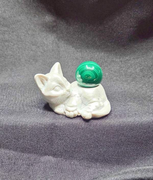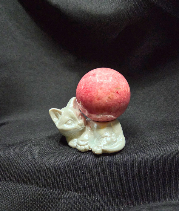 Add a cozy and charming touch to your crystal display with this sleeping white kitty sphere holder. The peaceful cat design curls gently around the base, creating a small cradle to hold your favorite crystal or gemstone sphere while bringing a warm, whimsical feel to your collection.