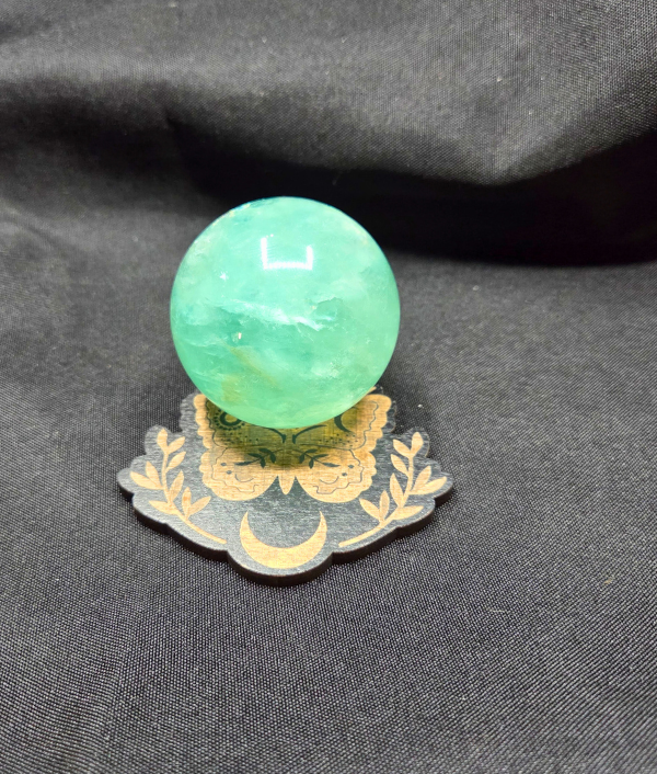 Measuring 2.75 inches by 3.25 inches, this laser-engraved wooden holder securely supports a small crystal or gemstone sphere while adding a graceful nature-inspired accent to your altar, desk, or crystal collection