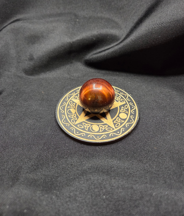 Display your crystal sphere with this engraved wooden sphere holder featuring a classic pentacle design. The pentacle is often associated with balance, protection, and connection to the elements, making it a meaningful addition to spiritual, altar, or metaphysical displays.
