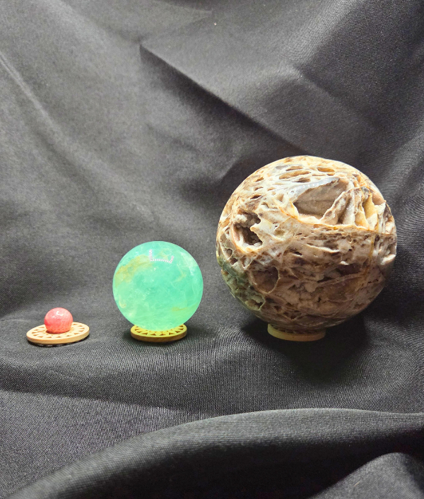 Measuring approximately 1.75 inches in diameter, this lightweight wooden holder provides a stable resting place for small crystal spheres while adding a subtle handcrafted feel to your altar, shelf, desk, or crystal collection.