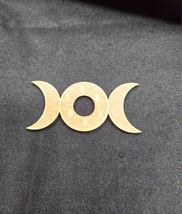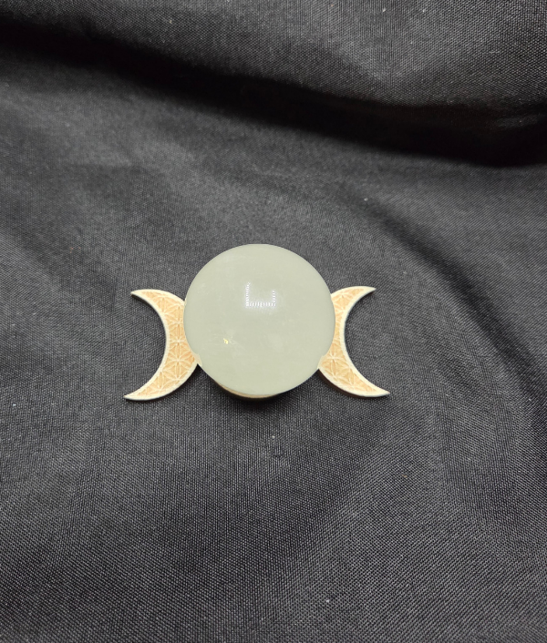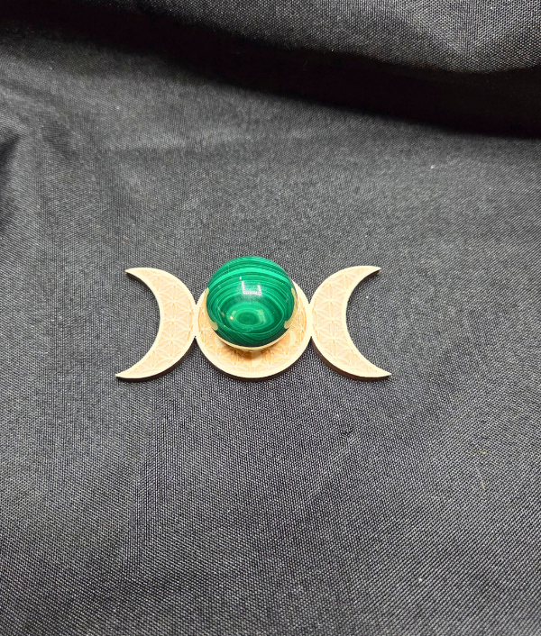 Honor the cycles of the moon with this engraved wooden sphere holder featuring the classic triple moonphase design. Representing the maiden, mother, and crone, this symbol is often associated with intuition, transformation, and feminine spiritual energy.